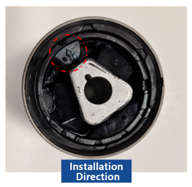 Zorg er tijdens de installatie voor dat het massieve (niet-gespleten) gedeelte van de bus is uitgelijnd met de horizontale voorwaartse rijrichting van het voertuig. Als de bus is voorzien van een oriëntatiepijl, moet deze pijl in de rijrichting naar voren wijzen.